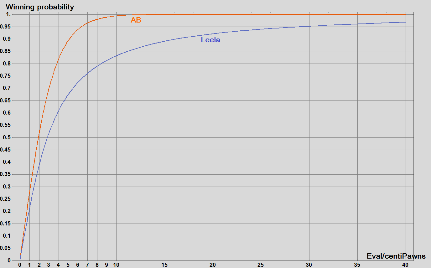 We see that a +3.0 eval by Leela has much less probability to win than for